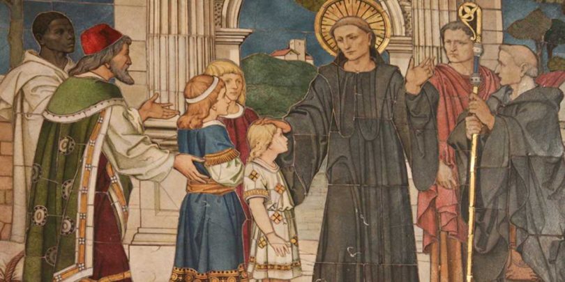 Róma angliai missziójának kezdetei homályba vesznek. Béda Anglia egyháztörténete című műve az egyetlen forrásunk. Ebben elbeszéli, hogy Gergely Rómában angol rabszolgákat látott, és ettől fogva dédelgette azt a vágyat, hogy Angliában is hirdessék az evangéliumot. De semmi sem történt ebben az irányban mindaddig, amíg 590-ben ő maga nem lett a pápa. Világos, hogy a kezdeményezés Gergelytől eredt, és a vezető, akit ehhez a vállalkozáshoz kiválasztott, saját kolostorának a priorja volt.