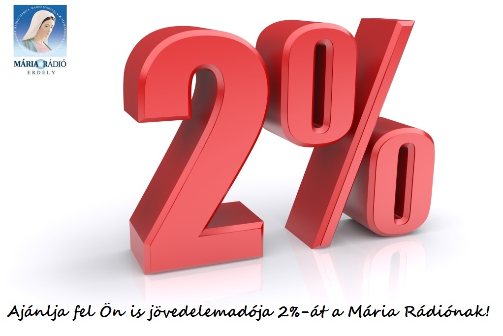 2018. május 25-ig felajánlhatja Ön is személyi jövedelemadója 2%-át a Mária Rádió javára. A szükséges adatok: Asociatia Mária Rádió ErdélyCif: 18090057Cont: Banca Transilvania: RO 40 BTRL 0050 1205 7226 3200 A Mária Rádió...
